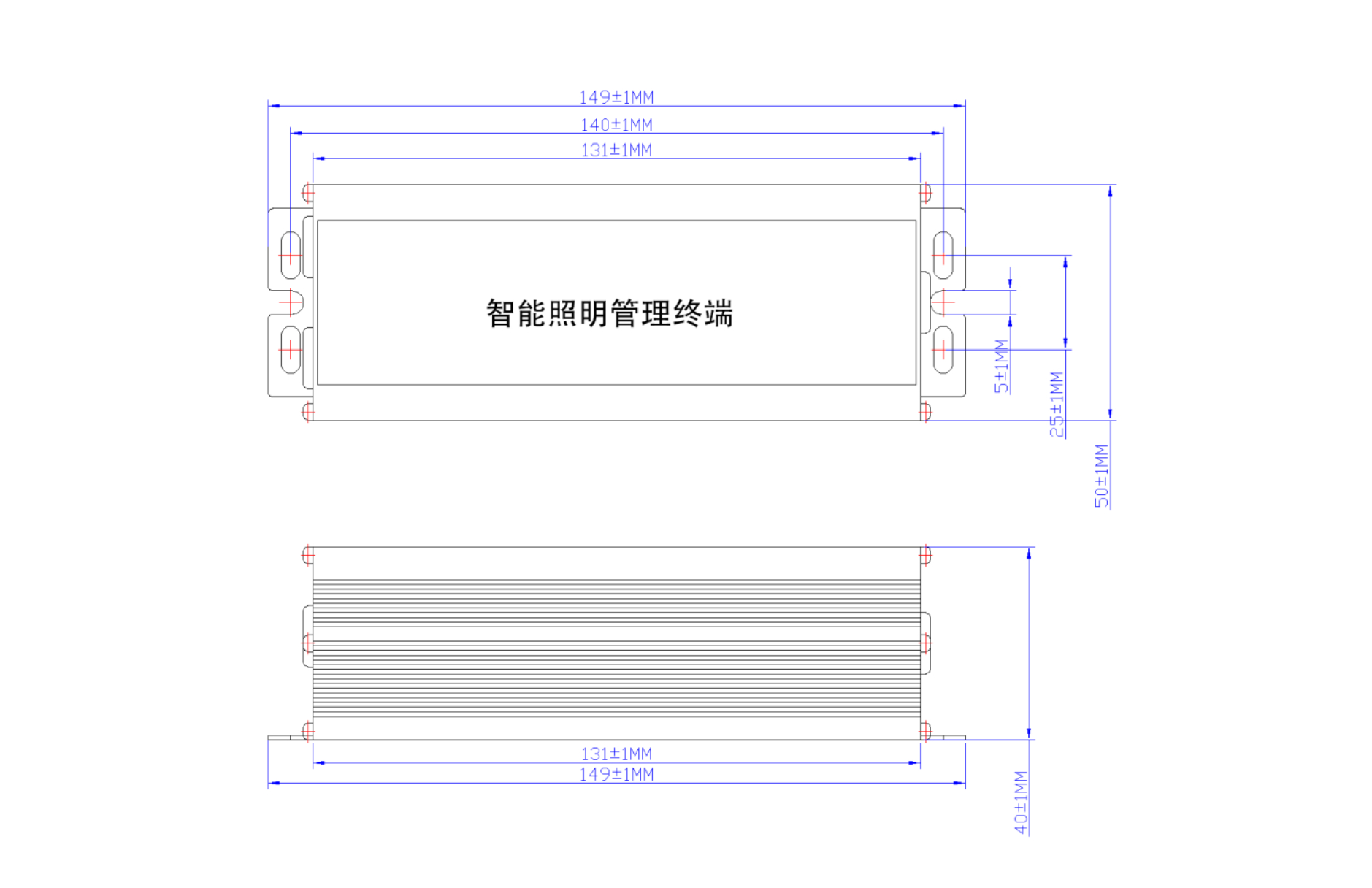 设备外形尺寸:长宽高分别为:149mm*50mm*40mm ± 1mm